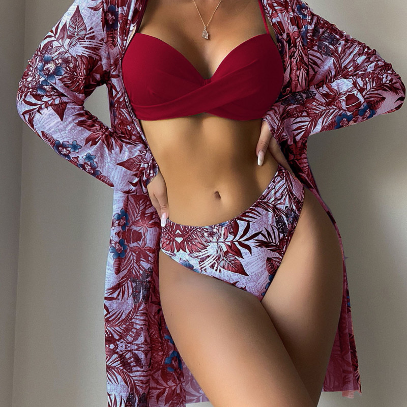 Купальник из 3 частей, арт КП1, цвет: бургундский