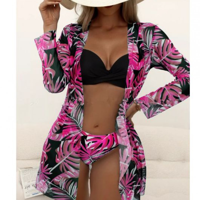 Купальник из 3 частей, арт КП1, цвет: черная роза с красными листьями