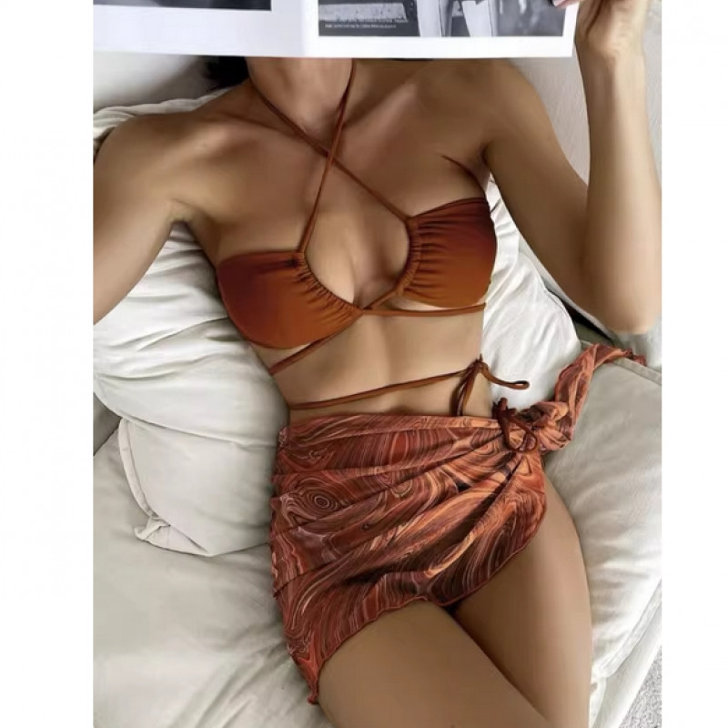 Купальник из 3 предметов, арт КП27, цвет: коричневый