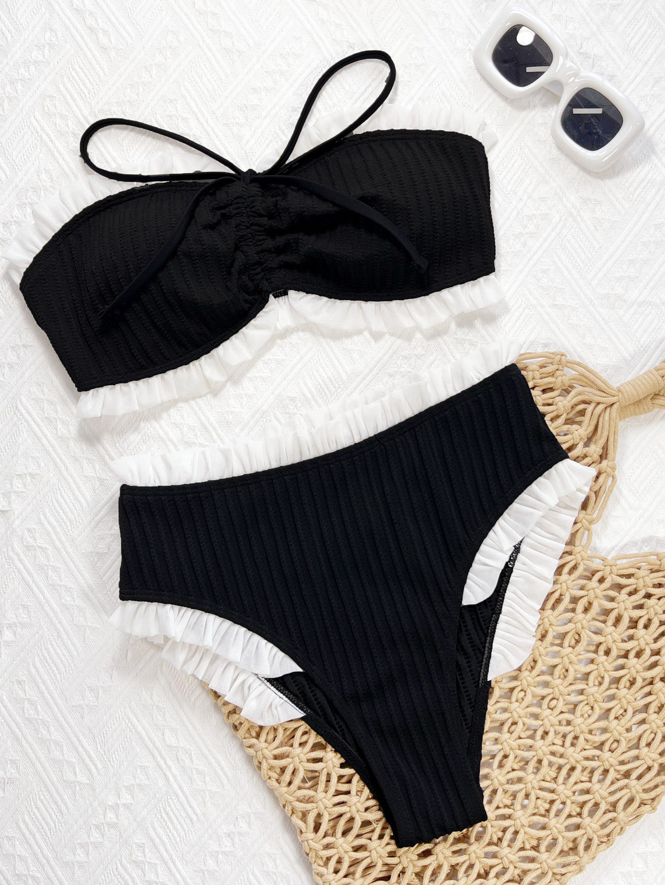 Купальник из 2 частей, арт КП5, цвет: чёрно-белый